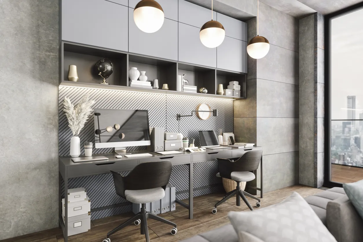 Kącik biurowy w salonie: dobierz odpowiednie oświetlenie główne i pomocnicze
