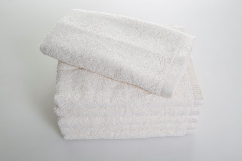 Jednokolorowy, klasyczny ręcznik kąpielowy z ekskluzywnej kolekcji Pierre Cardin zdobiony su btelną lamówką z logo projektanta. Wysokiej jakości tkanina. szerokość: 30 cm, długość: 50 cm, kolor: kremowy, Gramatura: 430 GSM, Skład: 100% bawełna