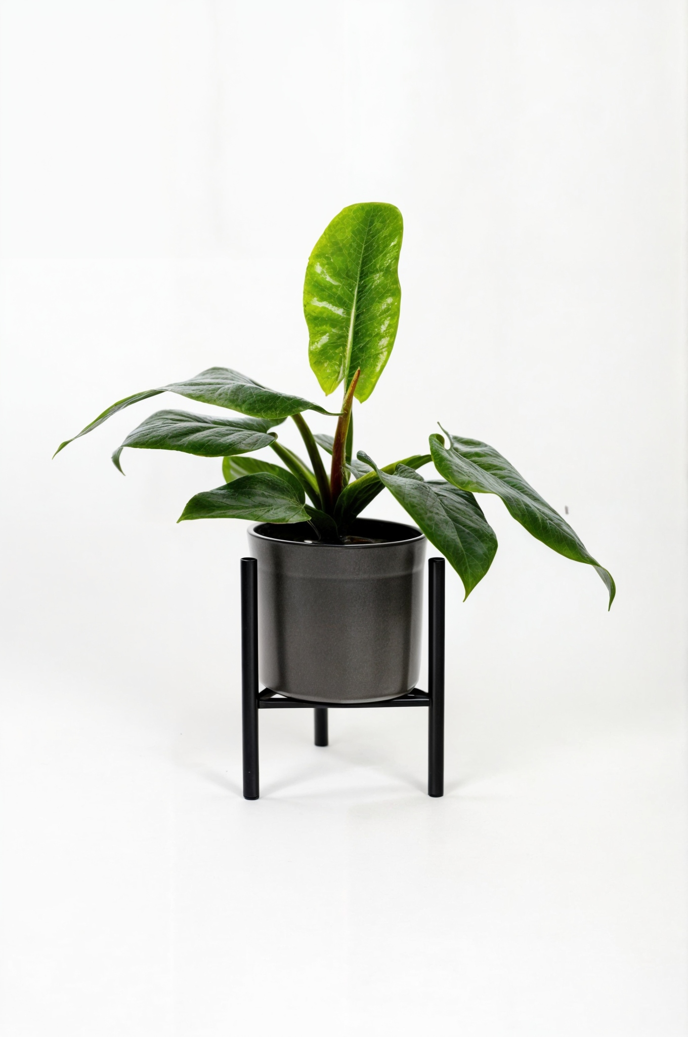 Stolik pomocniczy LEUVEN 27x27 cm - efekt kamienia, nogi czarny