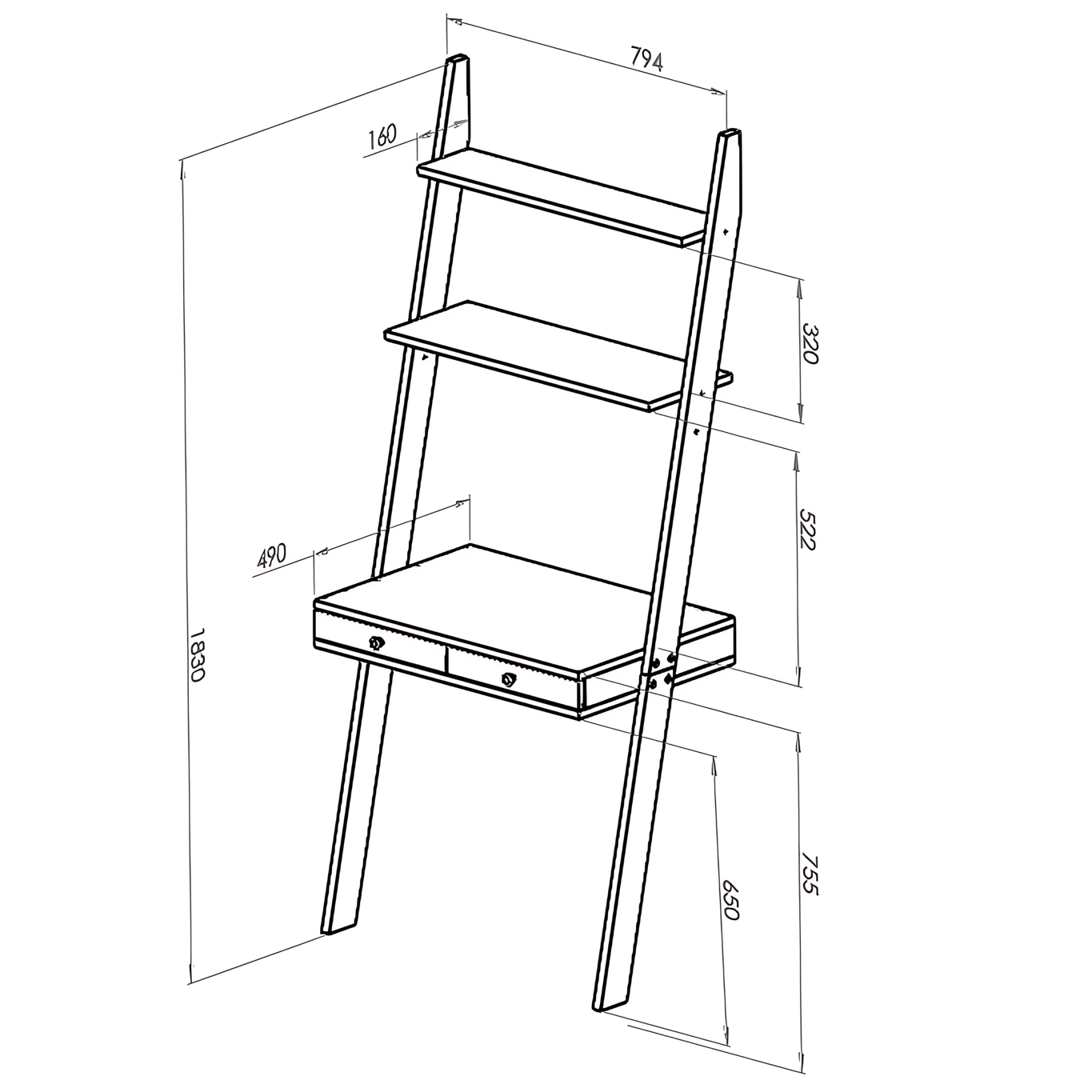 Biurko – drabinka z półkami i szufladami