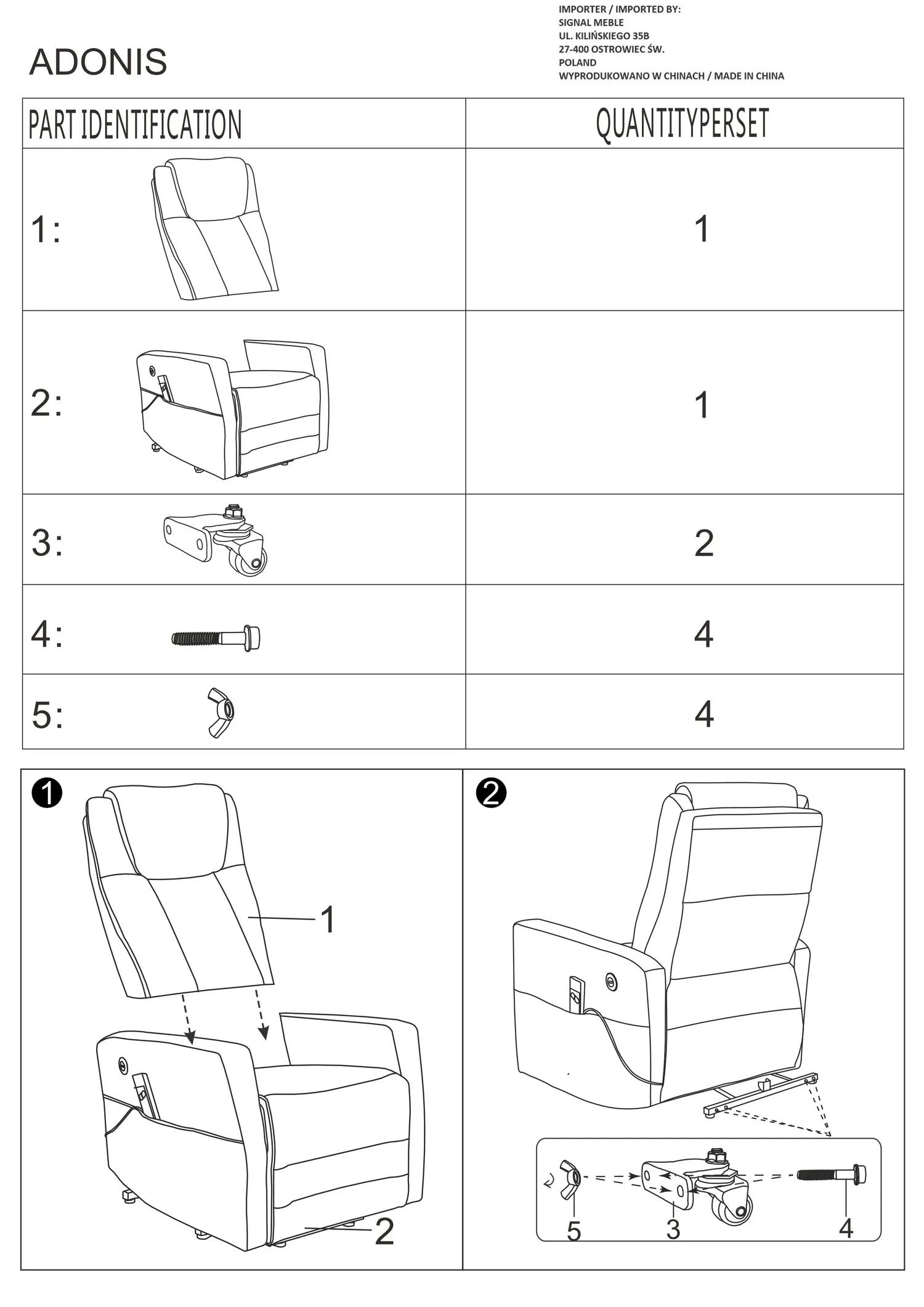 Typ fotela / sofy: Dla seniora, Z podnóżkiem, Rozkładany
