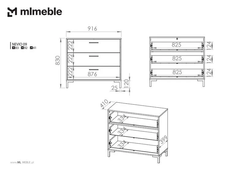 Stylowa i nowoczesna komoda do salonu i przedpokoju. Wyposażona jest w 3 szafki i 2 pojemne szuflady o pełnym wysuwie, które pozwolą uporządkować ubrania, dokumenty i inne domowe niezbędniki. Obok szuflad znajduje się szafka z półkami, która zapewnią jeszcze więcej miejsca do przechowywania.