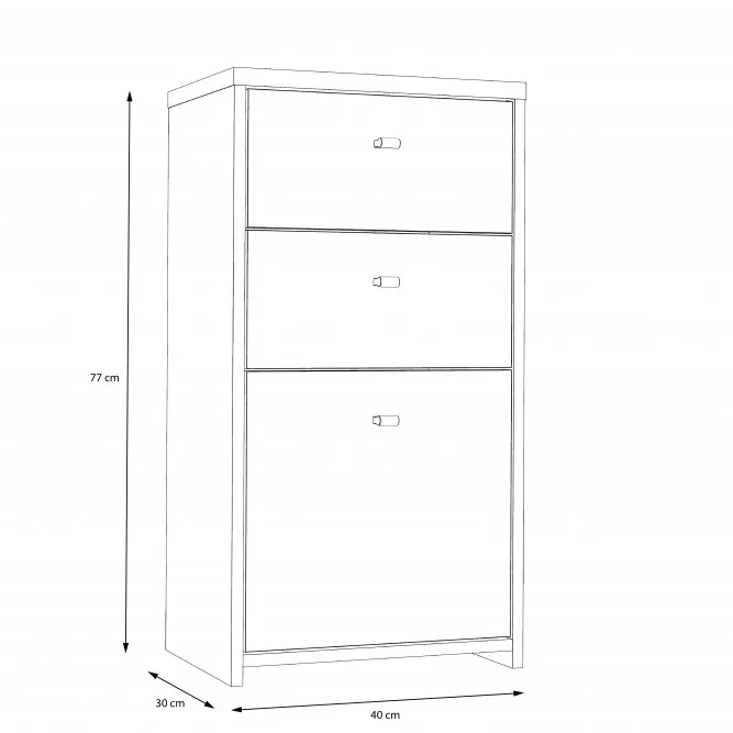 Szeroka na 40 cm komoda z tej kolekcji jest niezwykle funkcjonalna. Mebel ten wyposażony jest w dwie szuflady oraz pojemną półkę. Komoda wykonana została w dekorze Dąb Artisan z Białymi frontami.