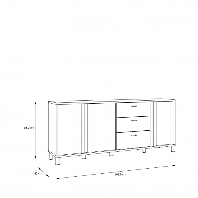 Ta komoda będzie praktycznym uzupełnieniem każdego nowoczesnego pomieszczenia. Posiada dużo miejsca do przechowywania różnych rzeczy. Wykonana została w połączeniu dwóch dekorów, Czarnego i Świerku Alpejskiego, który idealnie imituje naturalne usłojenie drewna.