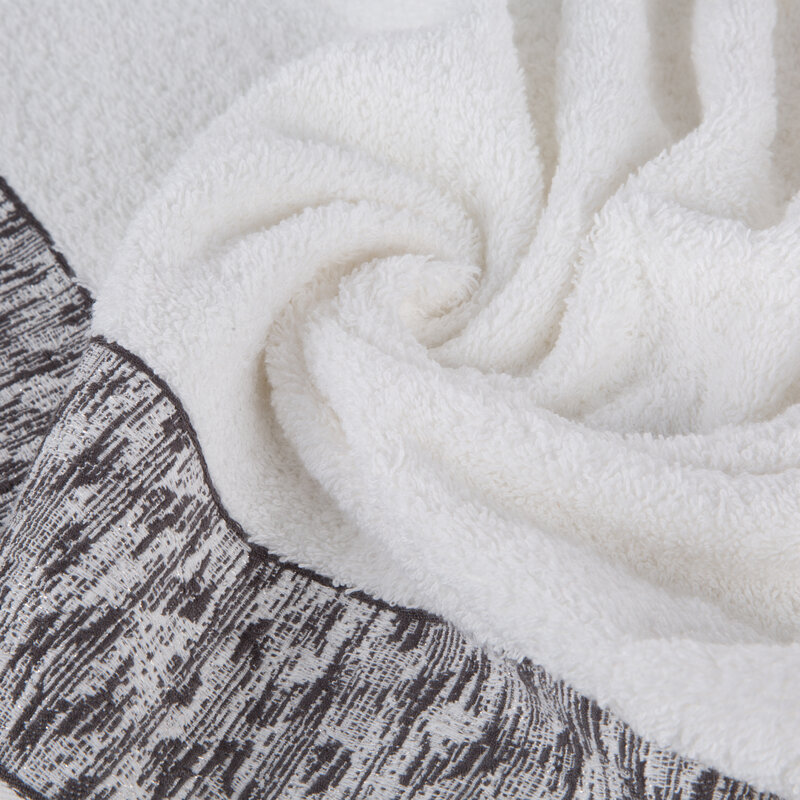 Ręcznik z żakardową bordiurą przetykaną błyszczącą nicią szerokość: 70 cm, długość: 140 cm, kolor: biały, Gramatura: 500 GSM, Skład: 100% bawełna: część ozdobna: 98% bawełna, 2% poliester
