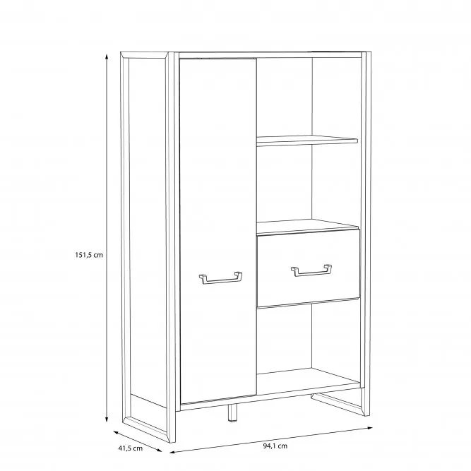 Regał z kolekcji HUD świetnie wpisze się w aranżację loftowego wnętrza. Przyjemne dla oka połączenie kolorystyczne dębu klepkowego z ciemnoszarym eleganckim betonem dodatkowo podkreśla industrialny styl i nadaje wyjątkowego klimatu . Wysoka jakość wykonania z pewnością pozwoli cieszyć oko przez długi czas. Dwudrzwiowy regał wykonany z wysokiej jakości płyty wiórowej okleinowanej folią składa się z czterech półek zabudowanych pełnym frontem oraz czterech półek zabudowanych częściowo oszklonym frontem. Ze względu na swoją formę mebel możemy wykorzystać do aranżacji salonu, pokoju dziennego, czy biura. Regał świetnie prezentuje się w połączeniu z pozostałymi bryłami kolekcji.