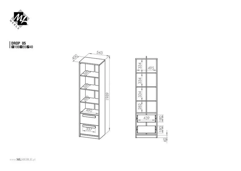 Regał jest częścią kolekcji mebli młodzieżowych Drop od polskiego producenta ML Meble.