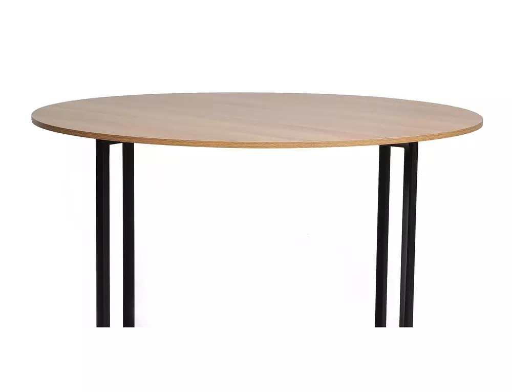 Stół okrągły ALTO to połączenie nowoczesnego, designerskiego stylu z naturalnym akcentem dla Twojej przestrzeni. Blat wykonany z płyty laminowanej w kolorze dębu, zaś stelaż z czarnego metalu. Jego design idealnie wpasuje się w aranżację salonu lub jadalni. Komfortowe biesiadowanie zapewnia blat o średnicy 120 cm i wysokość 75 cm. Produkt przeznaczony jest do samodzielnego montażu i objęty został przez producenta 2- letnim okresem gwarancji.