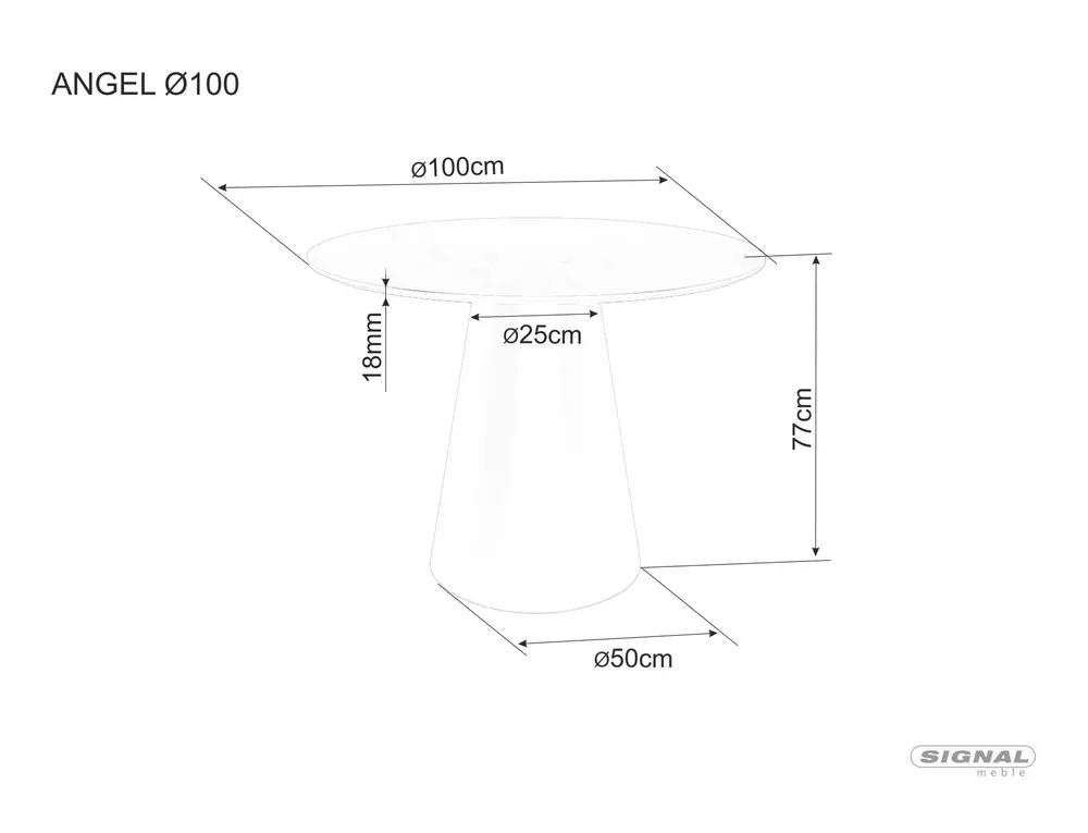 Stół okrągły ANGEL 100 cm kolor dębu to synonim wyrafinowanej prostoty, która urzeka subtelnym połączeniem naturalnego piękna drewna z nowoczesną lekkością formy. Ten starannie zaprojektowany mebel od polskiej marki Signal to spójne połączenie aktualnych trendów z dziedziny home designu inspirowanych naturą, z funkcjonalnością, która urzeknie nawet najbardziej wymagających użytkowników. Okrągły stółjadalniany na szerokiej podstawie to propozycja dla osób, które szukają balansu pomiędzy skandynawskim minimalizmem a subtelną elegancją, ceniące sobie meble, które nie tylko zdobią przestrzeń, ale stają się jej sercem.