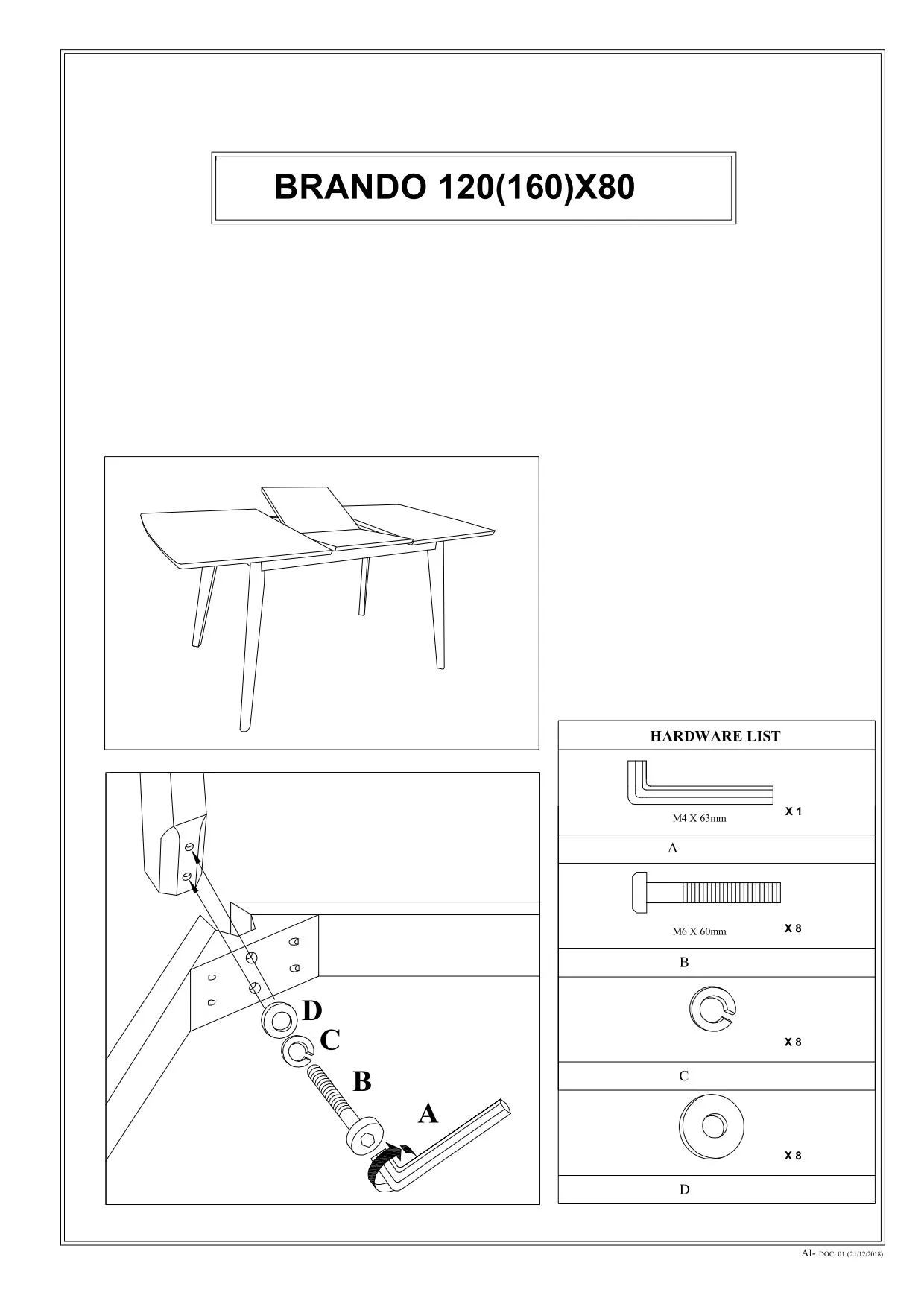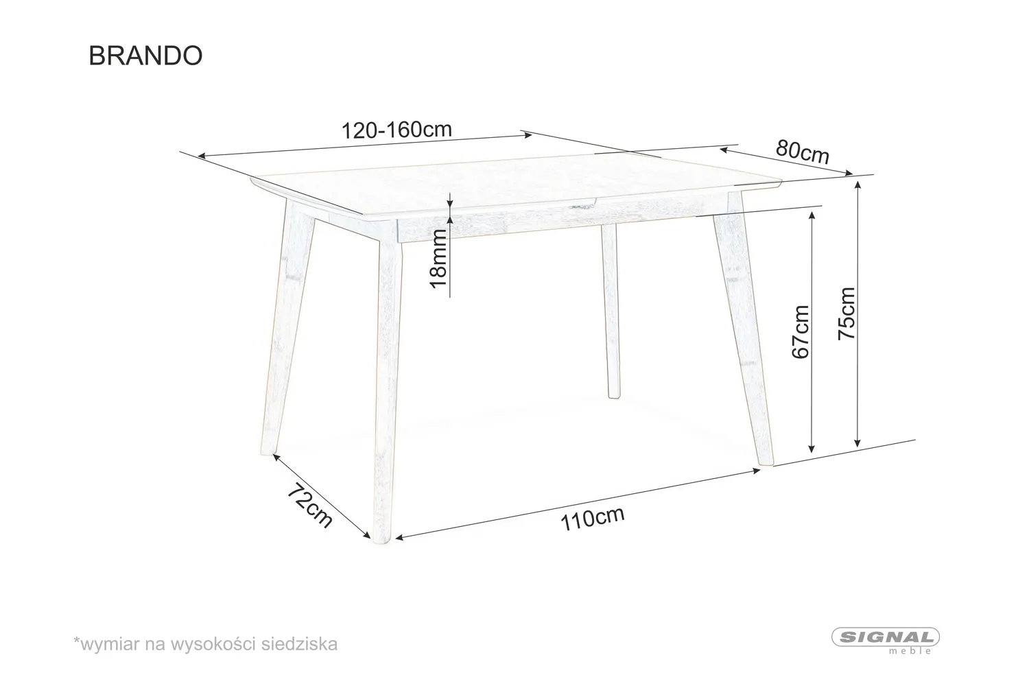 Stół rozkładany BRANDO 80x80(160) Signal