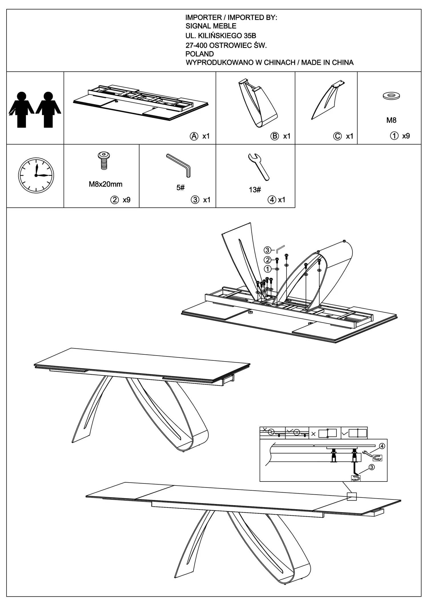 Nowoczesny, piękny stół rozkładany do salonu i jadalni, który doda do każdego wnętrza wyjątkowego designu. Efektowny blat wykonany z włoskiej ceramiki oraz szkła hartowanego z efektem kamienia/marmuru w kolorze czarnym zapewnia luksusowy i efektowny wygląd. Wraz ze zmyślnym stelażem tworzą niesamowity mebel, który zachwyca prezencją i charakterem.