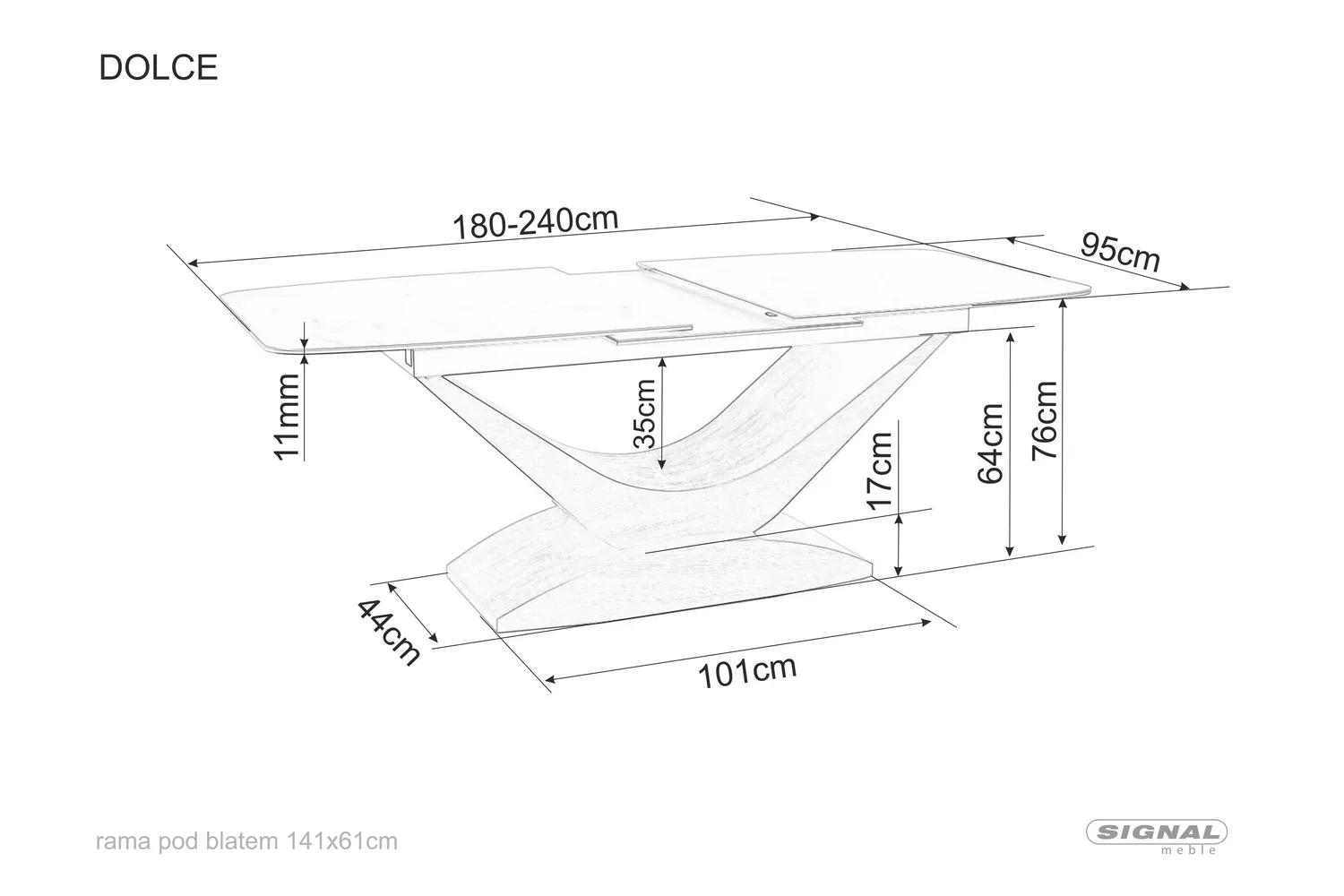 Stół rozkładany DOLCE CERAMIC180(240)x95 biała ceramika/dąb to doskonały przykład nowoczesnego rzemiosła, łączącego elegancję z funkcjonalnością, przeznaczonego do najbardziej wymagających wnętrz. Jego wyjątkowy blat naśladujący marmur, stanowi elegancki punkt centralny w każdej przestrzeni, a połączenie go z solidnymi nogaminadaje całości ciepła i naturalnego charakteru. Dzięki dopracowanemu projektowi, duży rozkładany stół do polskiej marki Signal zapewni komfort użytkowania zarówno na co dzień, jak i przy specjalnych okazjach.