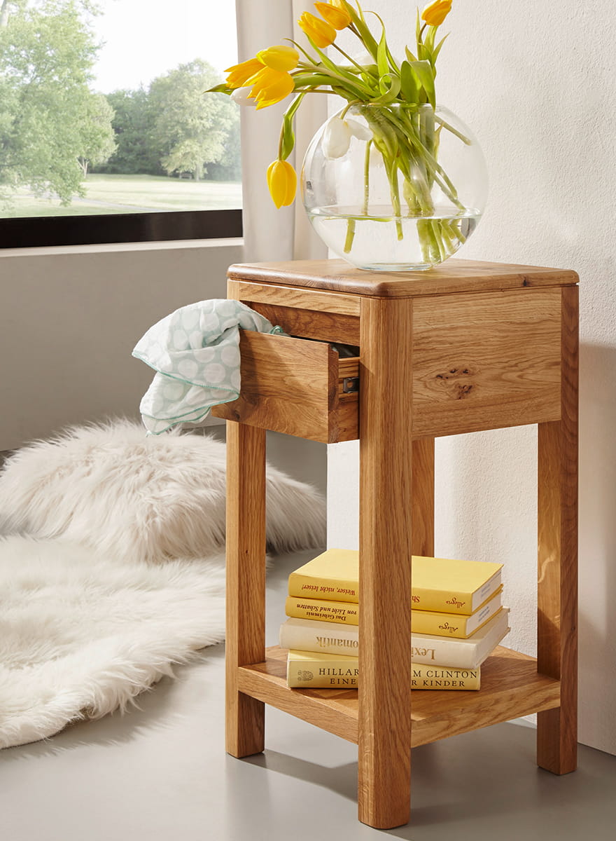 Stolik na kwiaty dębowy mniejszy Gialo to elegancki mebel idealny do ustawienia w przedpokoju, salonie lub sypialni. Jego kwadratowy kształt blatu sprawia, że doskonale komponuje się z różnymi aranżacjami wnętrz. Stołek ten jest wyposażony w praktyczną półkę, która umożliwia przechowywanie drobnych przedmiotów lub ozdobników. Stolik został wykonany z wysokiej jakości drewna dębowego, co gwarantuje trwałość i solidność. Jego naturalny kolor dodaje uroku i ciepła każdemu pomieszczeniu. Stolik na kwiaty dębowy mniejszy Gialo to nie tylko funkcjonalny mebel, ale także dekoracyjny element wyposażenia wnętrza. Jego klasyczny design sprawia, że doskonale wpisuje się w różnorodne style aranżacyjne, dodając charakteru i uroku każdemu pomieszczeniu. Dzięki wysokiej jakości materiałom i solidnemu wykonaniu, będzie służył przez wiele lat, zachowując swoje walory estetyczne.