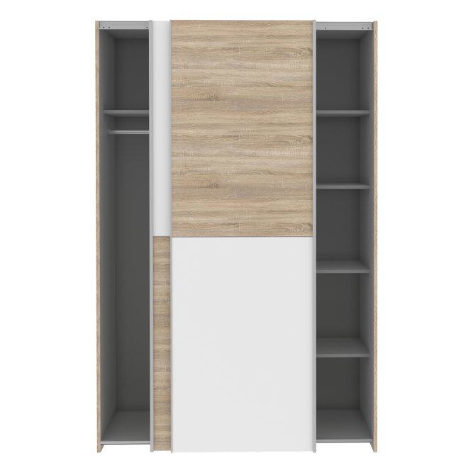 Szafa w klasycznym dekorze Białym świetnie sprawdzi się w pomieszczeniach takich jak: sypialnia, garderoba, pokój nastolatka oraz przedpokój. Dzięki neutralnej kolorystyce mebel wpasuje się w każdy wystrój wnętrza.