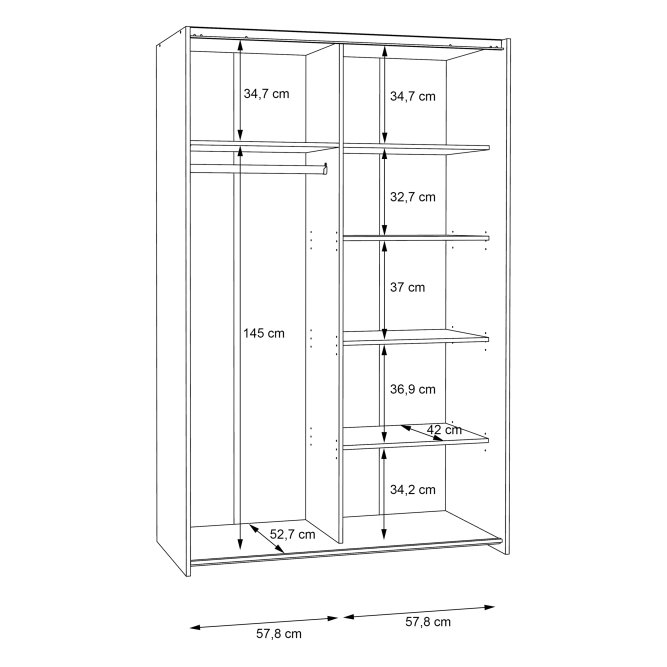 - Posiada jeden drążek ubraniowy o maksymalnym obciążeniu 15 kg