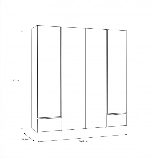 4-drzwiowa szafa z kolekcji LENYBELARDO sprawi, że sypialnia zyska wyróżniający element aranżacji i funkcjonalny mebel. Wnętrze wyposażone w 2 drążki ubraniowe zapewni miejsce na wygodne przechowywanie odzieży wizytowej. Wbudowane oświetlenie LED doda bryle uroku i sprawi, że pomieszczenie będzie wyglądało efektownie.