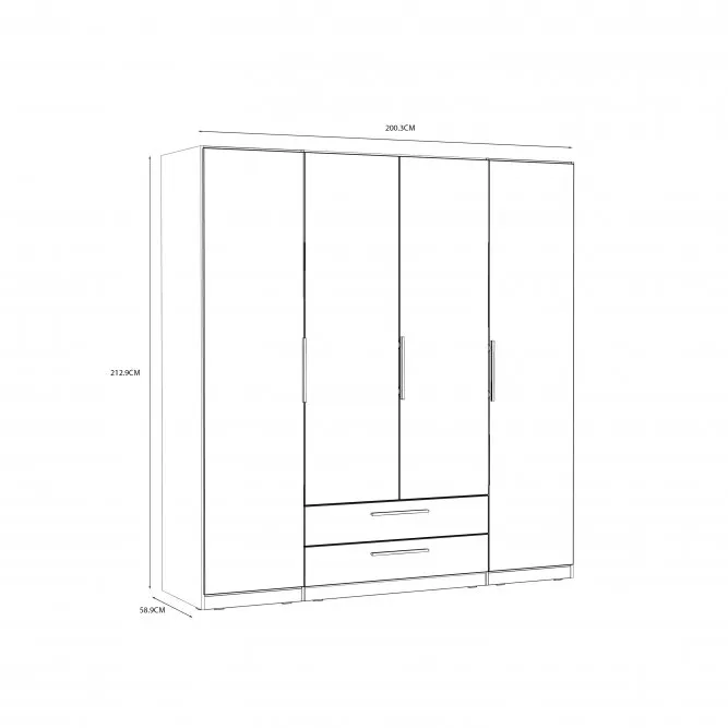 Szeroka, czterodrzwiowa szafa w dekorze Dąb Sonoma wyposażona jest w liczne półki, dwa drążki i dwie pojemne szuflady, co pozwala na optymalne zagospodarowanie przestrzeni. Neutralne wzornictwo i kolorystyka umożliwiają wykorzystanie jej w różnych pomieszczeniach domu czy mieszkania. Można uzupełnić aranżację ustawiając ją jako samodzielny mebel, ale też połączyć z innymi szafami z tej samej kolekcji, tworząc ciekawe i funkcjonalne zestawy szaf do sypialni, garderoby czy też pokoju młodzieżowego. Elegancji dodadzą jej ozdobne listwy wykończeniowe w dekorze pasującym do dekoru szafy (dostępne opcjonalnie) oraz smukłe, pionowe uchwyty w srebrnym kolorze. Duże lustra zamontowane na środkowych drzwiach szafy dodadzą głębi i powiększą optyczne wnętrze, a także ułatwią dobór codziennej garderoby.
