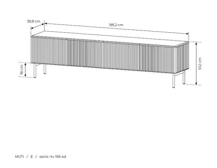 Szafka RTV 4-drzwiowa MUTI 195 z ryflowanym frontem w kolorze czarnym stanie się nie tylko praktycznym elementem Twojego wnętrza, ale także stylowym akcentem, podkreślającym nowoczesny charakter aranżacji. Jej minimalistyczny design w połączeniu z ryflowanym frontem nadaje meblowi unikalny urok, dzięki czemu doskonale wpisuje się w różnorodne style wystroju. Szafka MUTI 195 wyróżnia się solidną konstrukcją, co gwarantuje trwałość i stabilność. Wykonana z wysokiej jakości materiałów, z dbałością o każdy detal, z pewnością sprosta oczekiwaniom nawet najbardziej wymagających użytkowników. Model ten posiada przestronne szafki, które oferują dużo miejsca na przechowywanie sprzętu RTV, płyt, książek czy innych drobiazgów. Dzięki temu zyskujesz możliwości zachowania porządku i estetyki w pomieszczeniu – wszystkie akcesoria i media mogą być starannie schowane, a ty możesz cieszyć się swoją przestrzenią wypoczynkową bez niepotrzebnego bałaganu. Mimo braku uchwytów, zamontowane drzwi otwierają się w łatwy i wygodny sposób, co dodatkowo podkreśla nowoczesny charakter mebla. Metalowe nóżki dodają mu lekkości oraz stabilności, a także ułatwiają sprzątanie pod szafką, co jest niewątpliwą zaletą dla osób dbających o czystość w swoim domu.