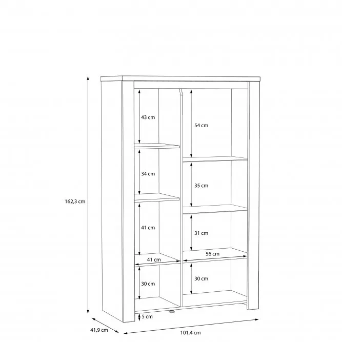 Nowoczesna witryna z kolekcji BRUGIA idealnie wpasuje się w nowoczesny styl wnętrza. Białe połyskujące fronty, dekor w kolorze ciemnoszarego betonu na wieńcu górnym oraz wnętrze w tym samym kolorze podkreślają jej wyjątkowość. Drzwiczki zostały wyposażone w mechanizm samodomykający, pozwalający na ich ciche domykanie. Pojemne szafki pozwolą na przechowywanie najpotrzebniejszych drobiazgów.