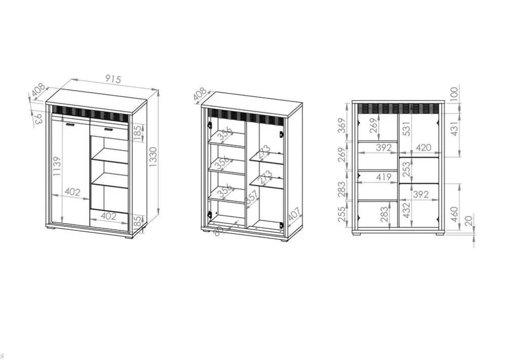 Witryna posiada dwie szklane półki ze szkła hartowanego, które posiada większą odporność na zarysowania i stłuczenia. Do szklanych półek można dokupić oświetlenie LED.