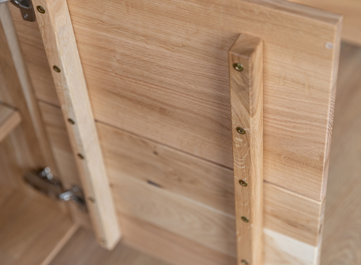· Naturalne drewno dębowe – witryna wykonana jest z litego drewna dębu, co zapewnia trwałość, odporność na uszkodzenia i ponadczasowy wygląd;