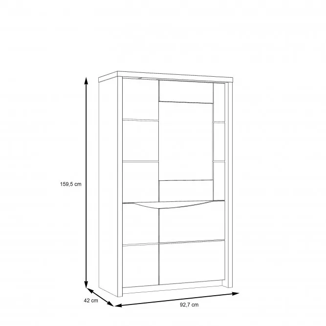 Niska witryna z kolekcji SAINT TROPEZ idealnie wpisuje się w najnowsze trendy wnętrzarskie. Uniwersalne połączenie Dębu Sangallo i ponadczasowej bieli świetnie sprawdzi się pokoju dziennym oraz jadalni jako miejsce ekspozycji eleganckiej zastawy obiadowej, czy zestawu herbaciano-kawowego. Szczególną uwagę zwraca punktowe oświetlenie klasy energetycznej A+ montowane w standardzie, wysuwając na pierwszy plan wykonane ze szkła hartowanego półki oraz dekoracyjne frezy, które pełnią rolę uchwytów.