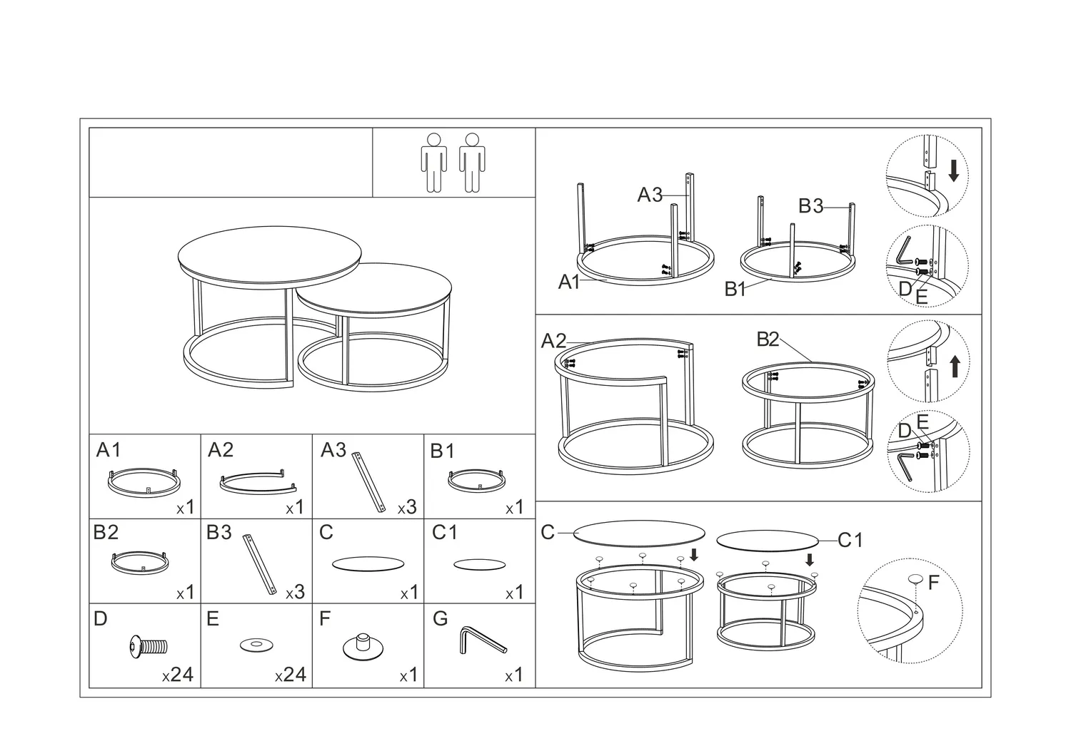 Typ stołu: Stoliki kawowe podwójne, Okrągły
